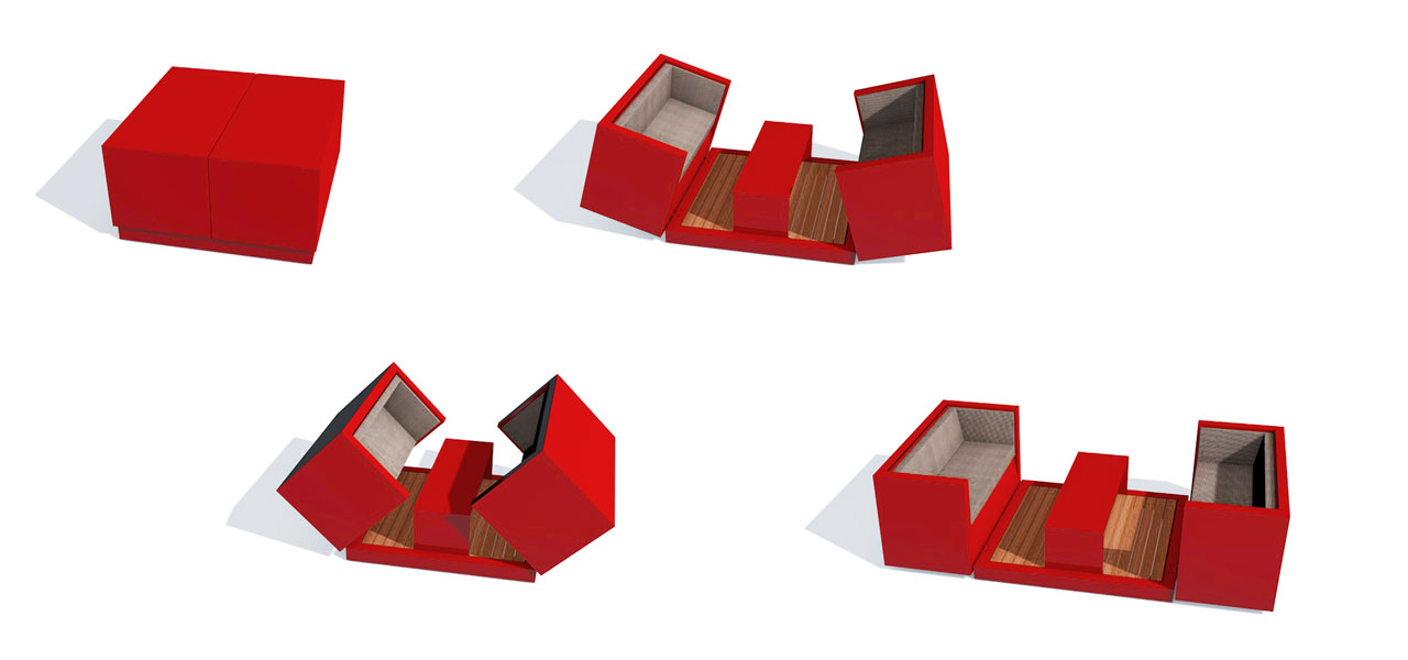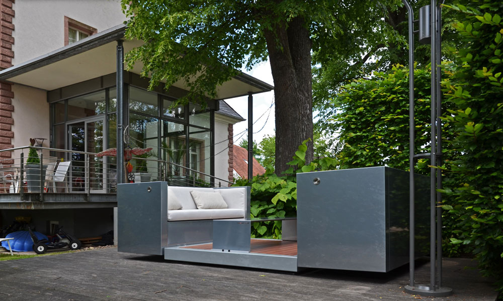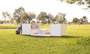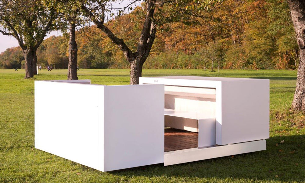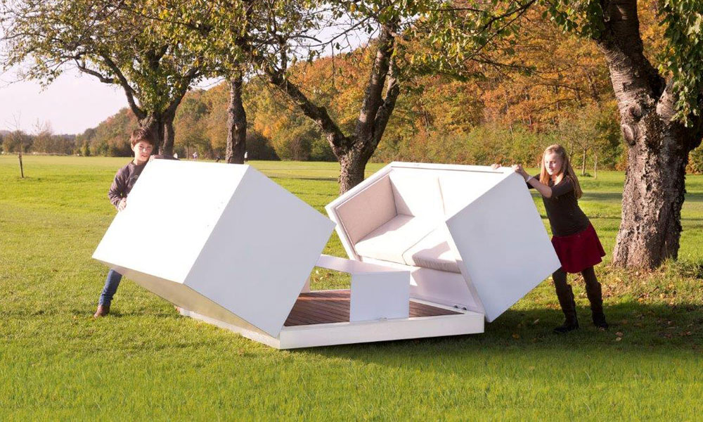 Skulptur oder innovative Sitzgruppe - der Cube besticht durch seine klare Form und überzeugt sowohl geschlossen, als auch geöffnet. Der Cube ist für den ganzjährigen Außeneinsatz konzipiert und entsprechend robust. Beim Aufklappen der zwei Sitzschalen entfaltet sich das kompakte und witterungsgeschützte Objekt in eine offene und bequeme Sitzgruppe. Die Verwandlung zum Lounge-Mobiliar präsentiert sich dabei wie ein Wohnzimmer im Freien. Der Cube ist in verschiedenen Farben erhältlich.